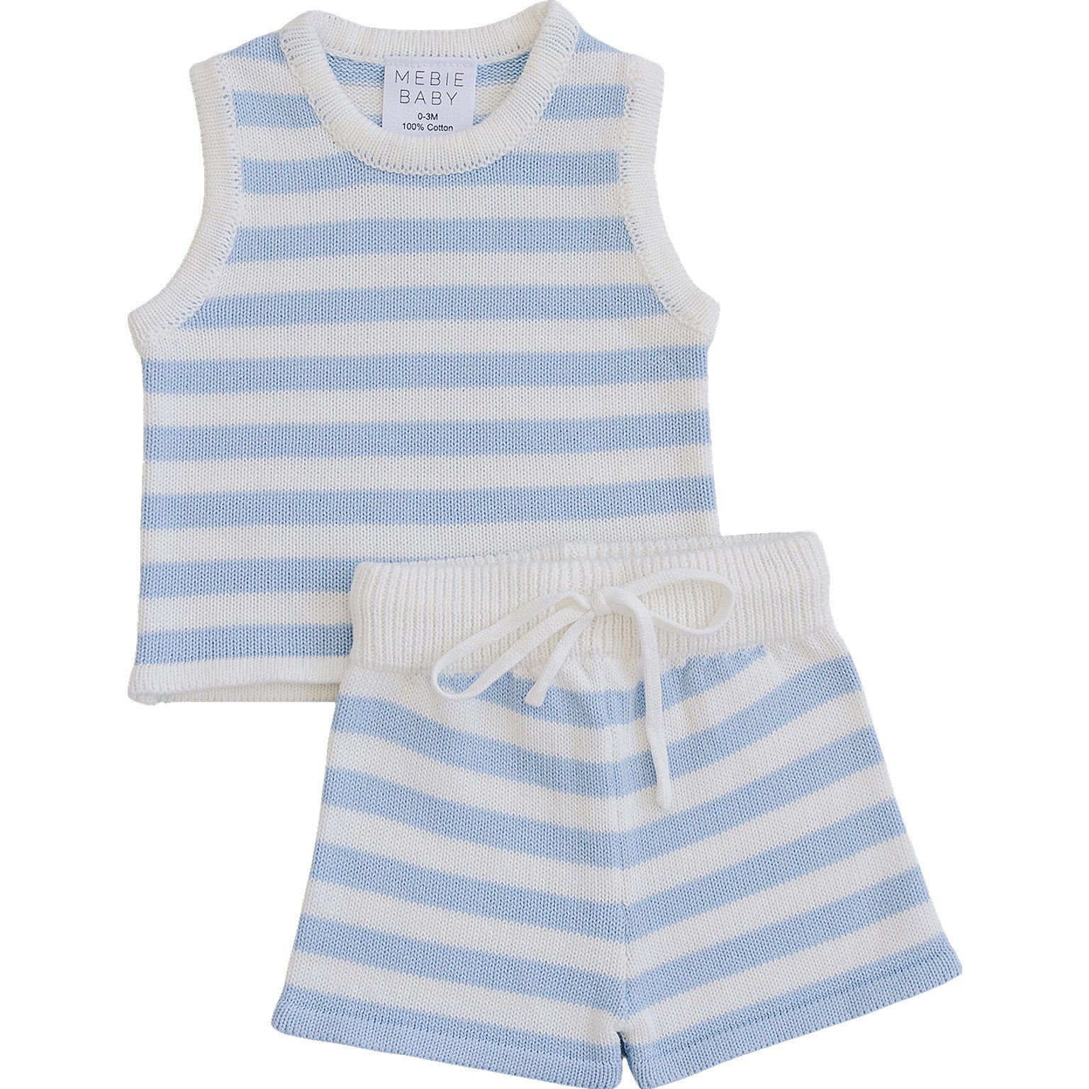 Our Blue and white striped knit short set is a sweet and comfortable choice for everyday wear. Made from a soft, breathable knit, this set is gentle on little ones and allows for easy movement throughout the day. The classic stripe pattern adds a playful touch while still feeling timeless—perfect for spring and summer days, from playtime to family outings.