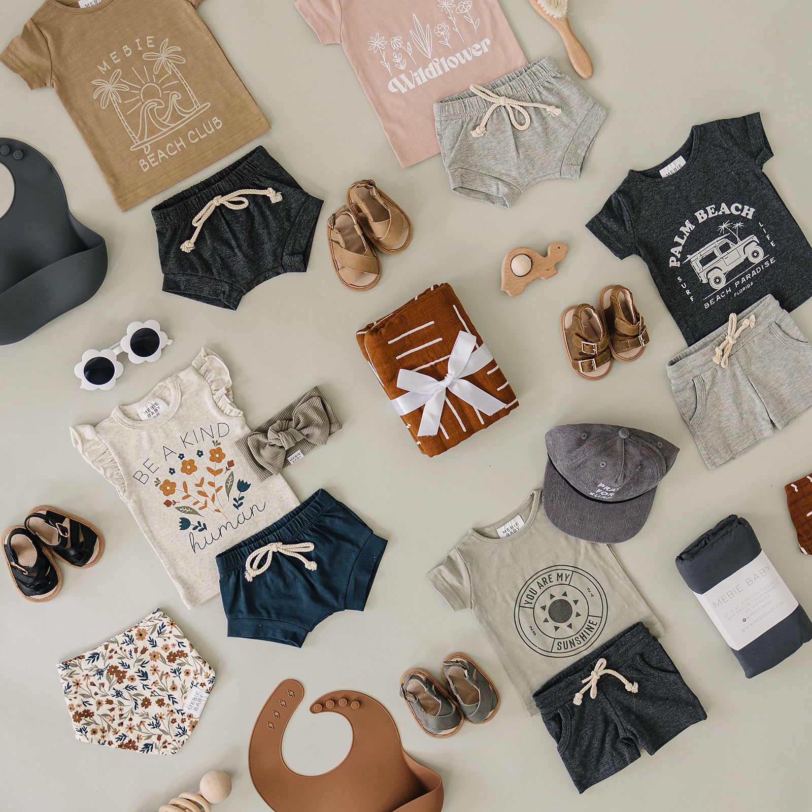 These are our cotton shorts. They are made out of a cotton fabric, they have an elastic and a faux tie on the waist! They pair so cute with our cotton tees!