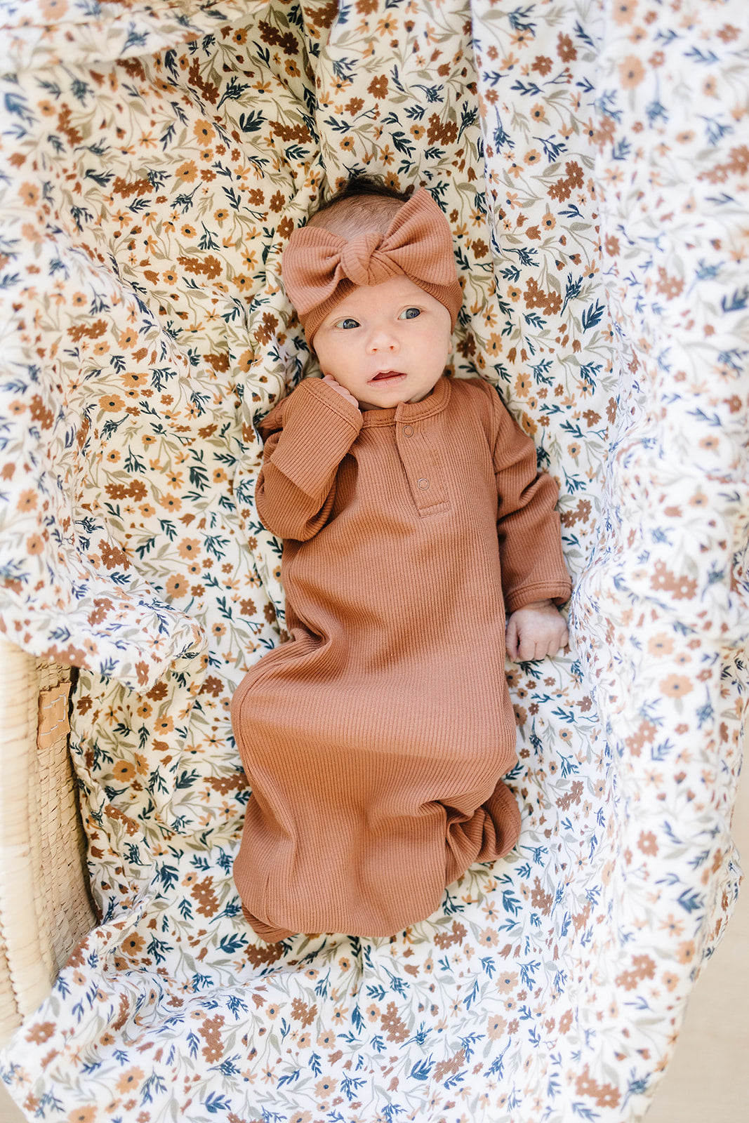 These gowns are size 0-3. The Mebie Baby Organic Knot Gown is a must-have for newborns, offering both comfort and convenience. Crafted from incredibly soft organic cotton, this gown is designed to keep your little one cozy. With a range of gender-neutral designs and colors, it is suitable for any baby. The gown features practical elements such as fold-over hands, two snaps for easy on and off, and shoulder flaps for effortless dressing. The bottom can be conveniently tied and untied in a knot, allowing for quick and hassle-free diaper changes. Simplifying the process of dressing your baby, this gown combines functionality with style, making it an essential addition to your baby's wardrobe.