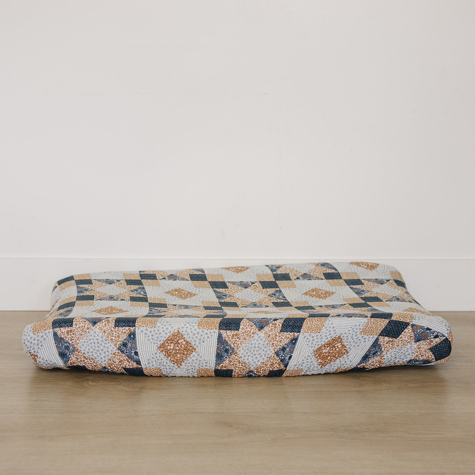 Transform your baby's changing area with the Mebie Baby Patchwork Print Muslin Changing Pad Cover. Made from soft and breathable muslin fabric, this cover is gentle on your baby's skin. The patchwork design adds a touch of vintage style to your nursery decor. The elasticized edges ensure a snug fit on standard changing pads, keeping your little one comfortable during diaper changes. Machine washable for easy care, this changing pad cover is a must-have for any parent looking to combine functionality with fashion.