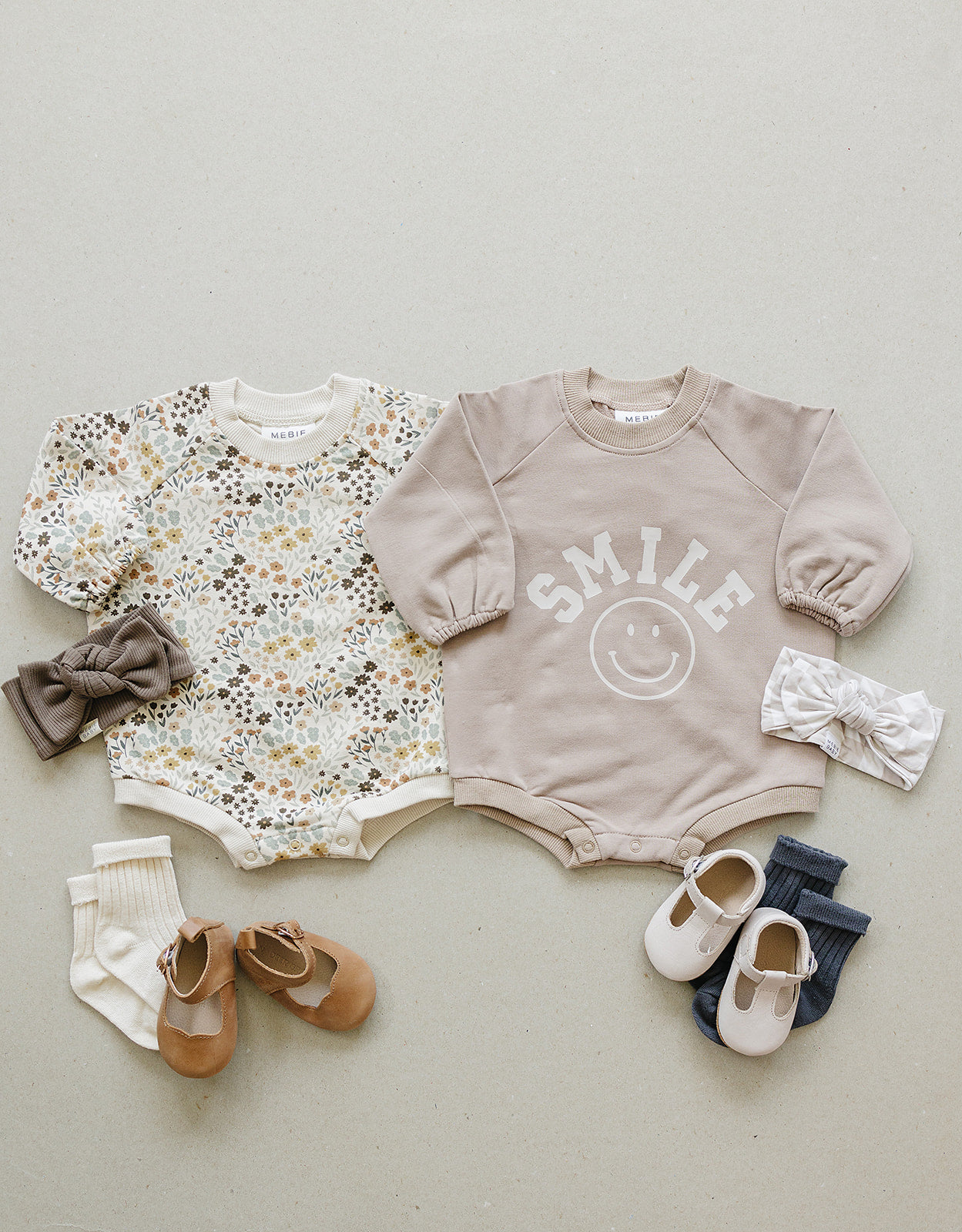 Introducing our Smile French Terry Bodysuit, available in sizes 0-3 to 18 months. This bodysuit is crafted from ultra-soft French terry fabric to ensure maximum comfort for your little one. Featuring a charming smile print, it adds a touch of cuteness to any baby’s wardrobe. Ideal for both playtime and naptime, the Smile French Terry Bodysuit combines durability with adorable style. Explore our collection today and find the perfect blend of comfort and fashion for your baby. Shop now at Mebie Baby for top-quality baby clothing that you and your baby will adore.