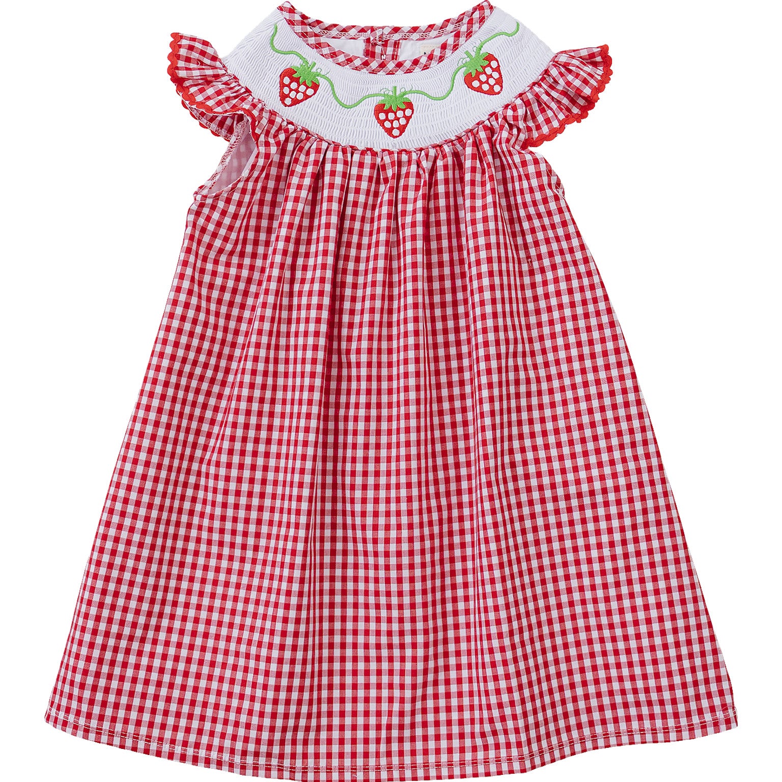 Dress your little one in sweetness with our Gingham Strawberry Dress, featuring charming strawberries embroidered on the neckline. This delightful dress combines classic gingham with playful accents, making it the perfect choice for sunny days and joyful adventures.